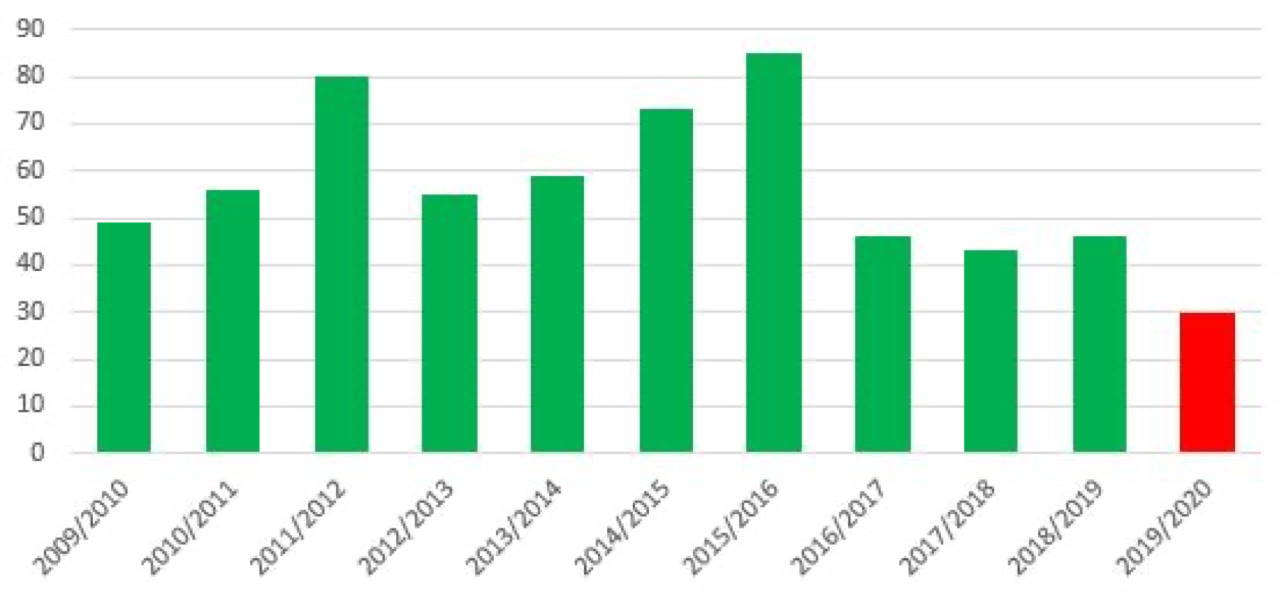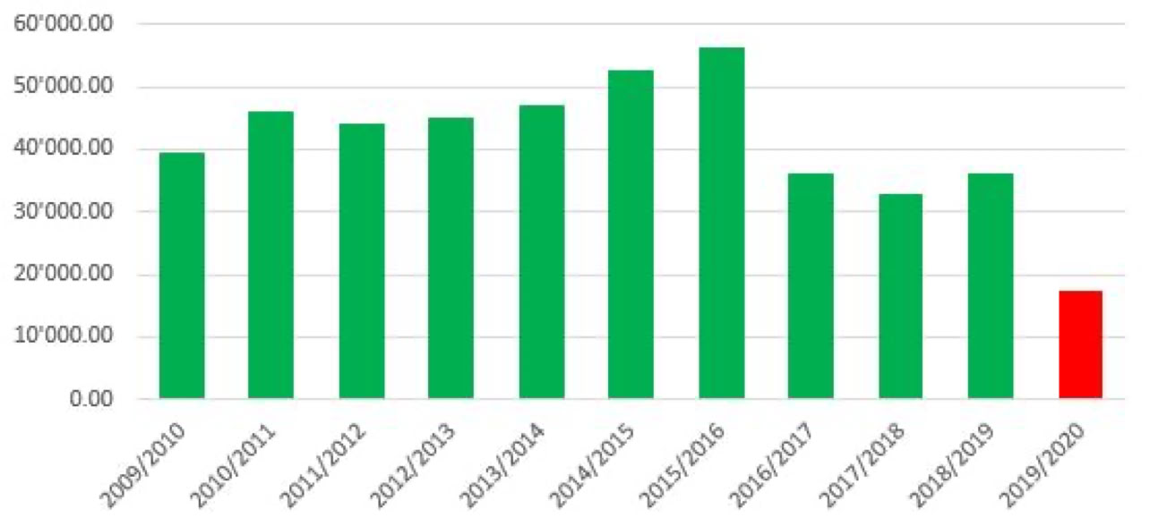 Die Anzahl der Stipendien variiert von Jahr zu Jahr, je nach verfügbaren Mitteln: