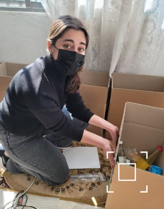Nour Karout, unsere jüngste Teilnehmerin, die leidenschaftlich gerne zeichnet und malt, hat die Kartons dekoriert. Keine natürlichen Blumen? Was soll's! Nour hat welche gemalt. So gestaltete sie ihre Freizeit und beteiligte sich am "Korb".